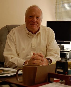 Deacon David Zimprich, seated at his desk in the Cousins Center, on Dec. 15, is retiring and leaving his position as associate director for deacon services this week. After a career in law enforcement, he served in the position with the archdiocese for 17 years. (Catholic Herald photos by Maryangela Layman Román)He would reply, “Well, they’re both service. You’re serving people. You don’t go out on a job to shoot people; you go to help people at their worst time – they’ve been robbed, beat up, in a car accident, their home broken into. Being a deacon is the same thing; you’re there to serve and help people.”