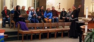 Catholic churches frequently featured on the tour include the Basilica of St. Josaphat and the St. Joan of Arc Chapel on Visitors listen as Capuchin Franciscan Fr. Mike Bertram, pastor of St. Francis of Assisi Church, Milwaukee, explains the history of the church as part of the “Churches and Chocolate” tour offered by Milwaukee Food and City Tours. (Catholic Herald photos by Allen Fredrickson)the Marquette University campus, both in Milwaukee. Other featured churches include Annunciation Greek Orthodox Church, designed by Frank Lloyd Wright, Grace Lutheran Church, and St. Paul’s Episcopal Church, all in Milwaukee.