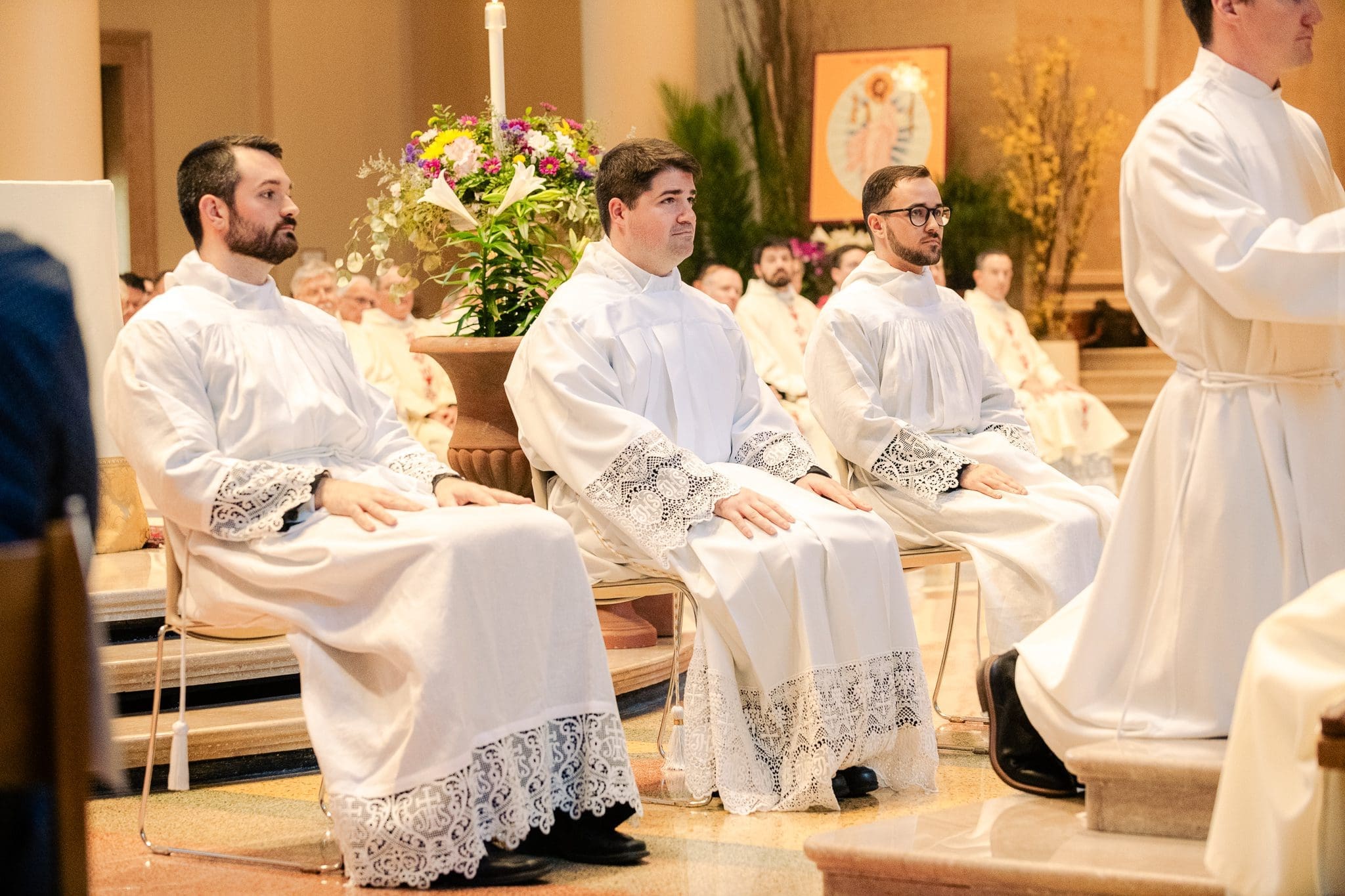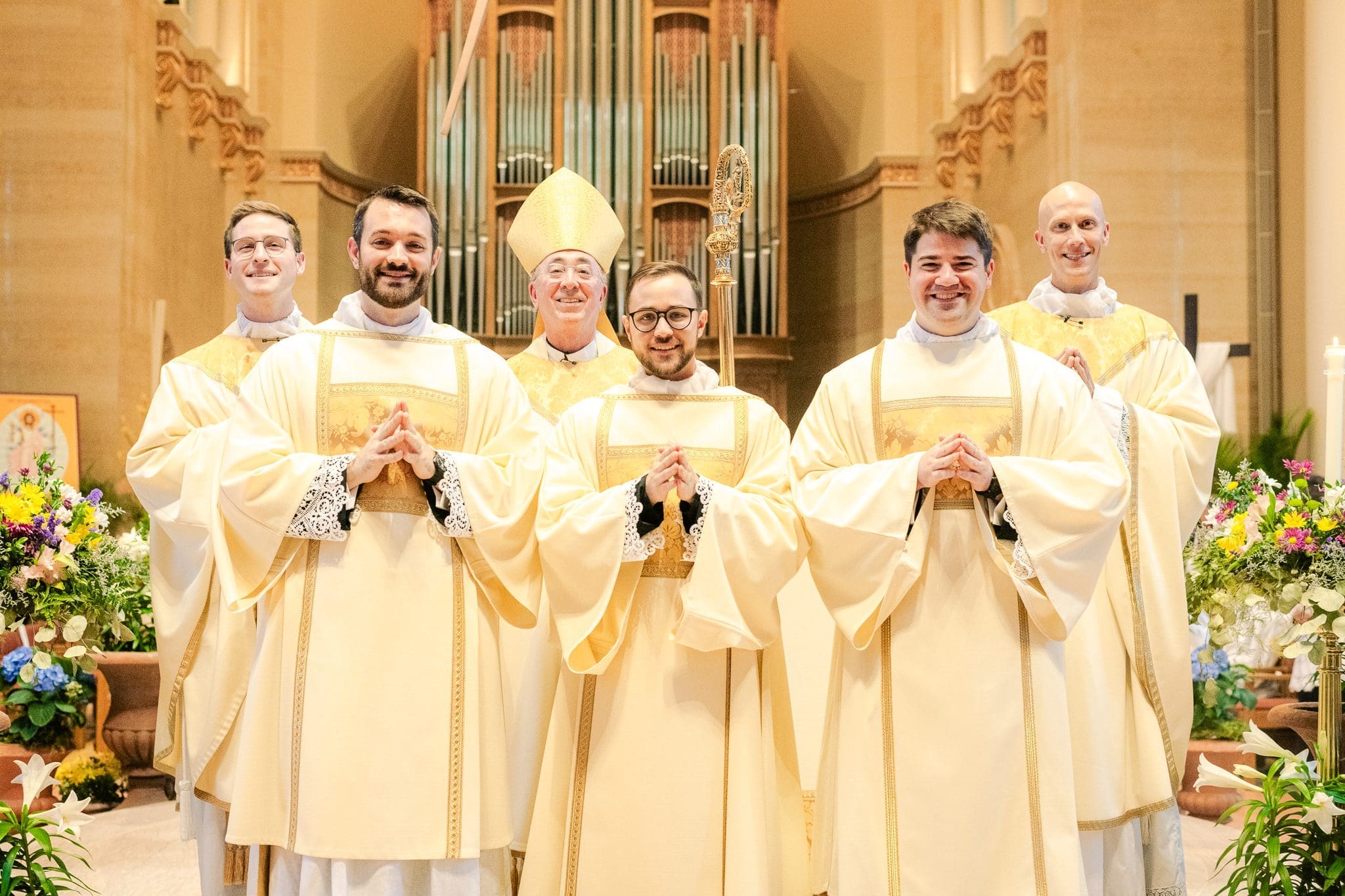 (Front, from left) Dcns. Aaron Siehr, Brady Gagne and Timothy Sanchez were ordained to the transitional diaconate Saturday, April 20, at the Cathedral of St. John the Evangelist, Milwaukee. (Photo courtesy of Saint Francis de Sales Seminary)