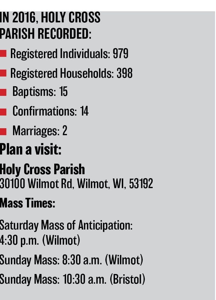 When Dr. Sandi Schmitt reflects on the characteristics of Holy Cross Parish that please her the most, she points to qualities such as family. The church offers two intimate Kenosha County worship settings, one in Bristol and the other in Wilmot. It features well-grounded relationships. It’s a place where people know your name and make you feel welcome.