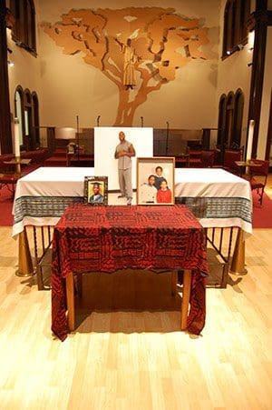 Participants were invited to place photos of their loved ones who are incarcerated on a table near the altar. (Catholic Herald photos by Ricardo Torres)