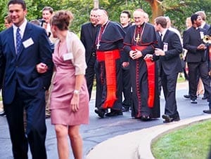 Cardinals Timothy M. Dolan and James M. Harvey stroll along the Saint Francis Seminary, St. Francis, driveway during the Saint Francis Seminary Dinner on Sept. 6, an event that drew 850 guests. (Catholic Herald photo by Juan C. Medina)SEPTEMBER