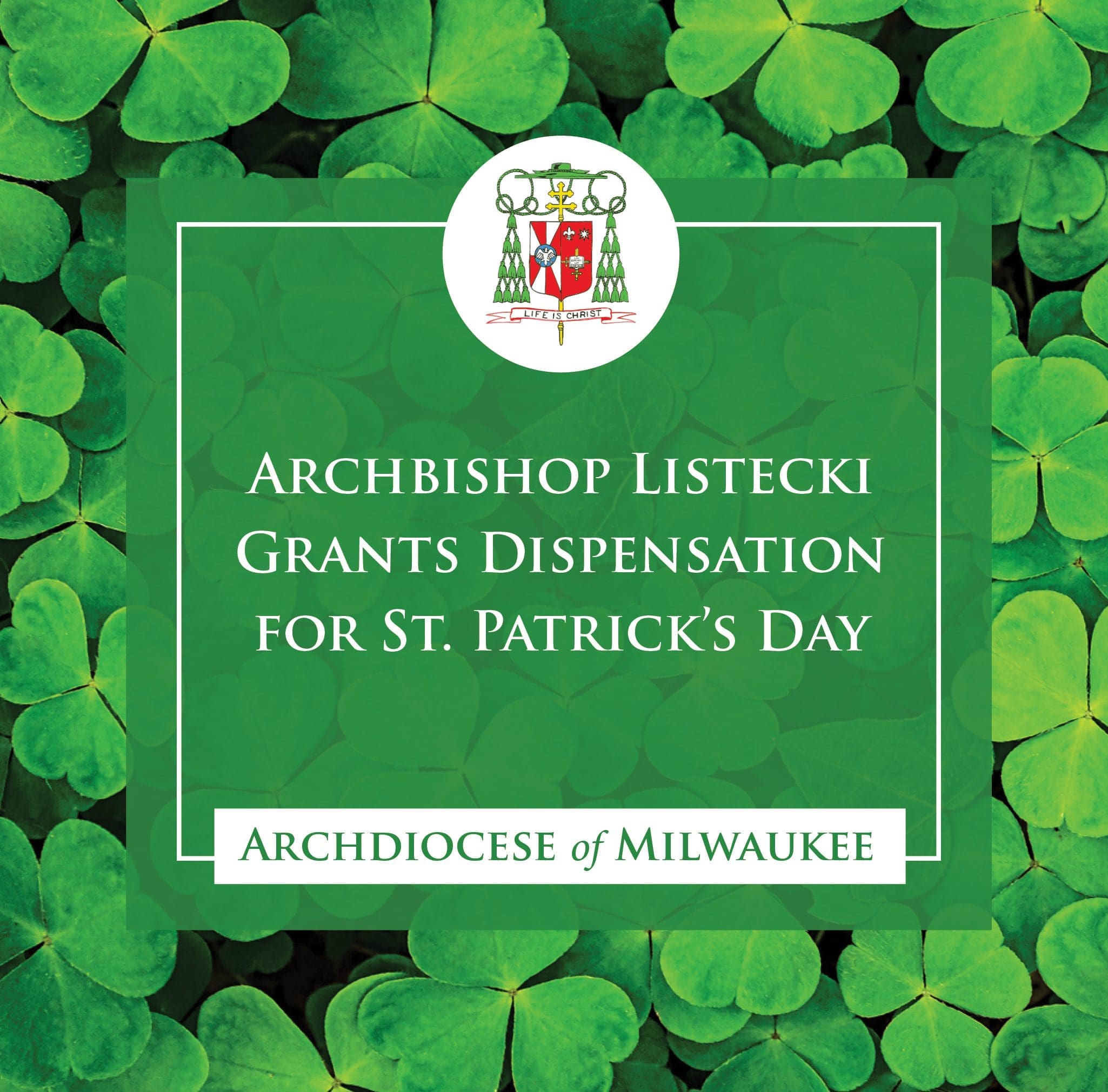 After careful consideration, Archbishop Jerome E. Listecki has granted a dispensation for March 17 which lifts the obligation of abstinence from meat on Fridays during Lent so Catholics in the Archdiocese of Milwaukee can celebrate St. Patrick’s Day.