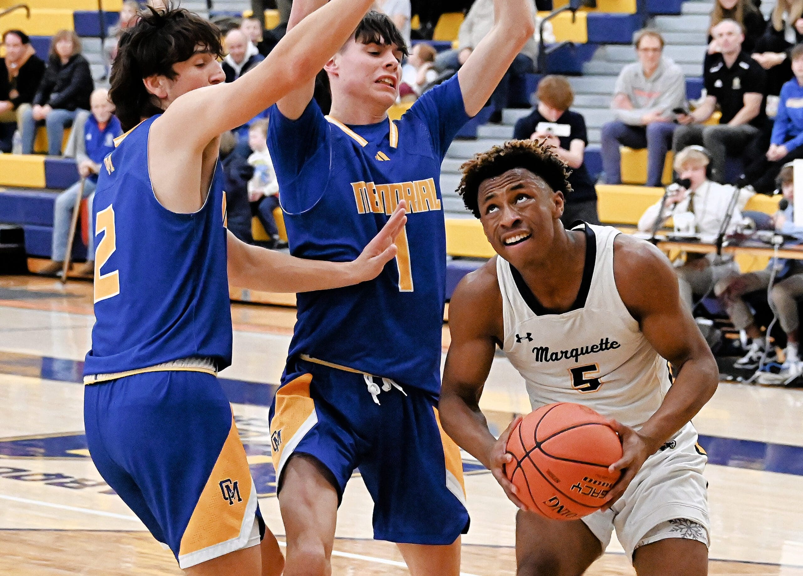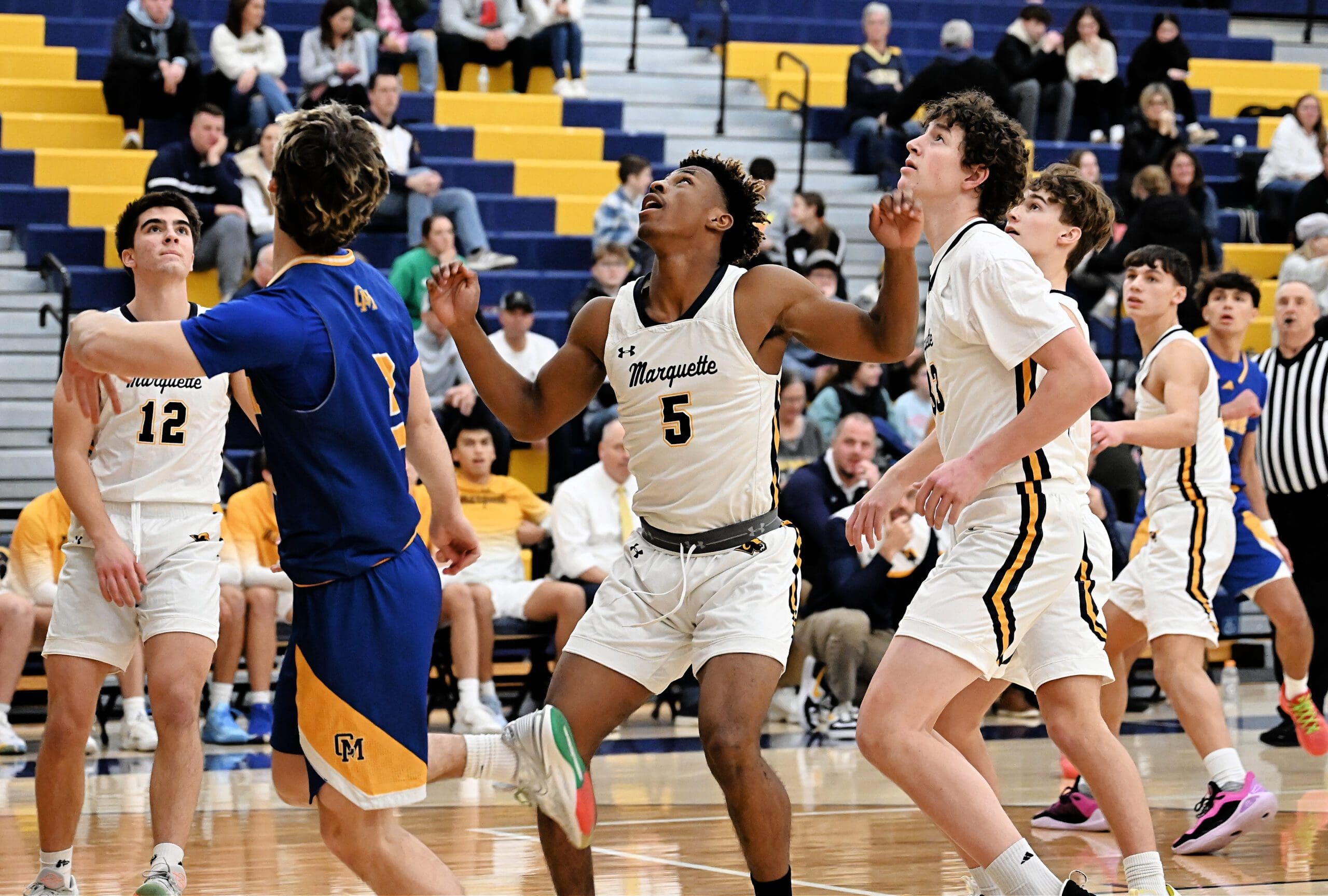 Marquette University High School, Milwaukee, defeated visiting Catholic Memorial, Waukesha, by a score of 75-68 in Saturday, Dec. 14, boys basketball game. (Photos by David Bernacchi)