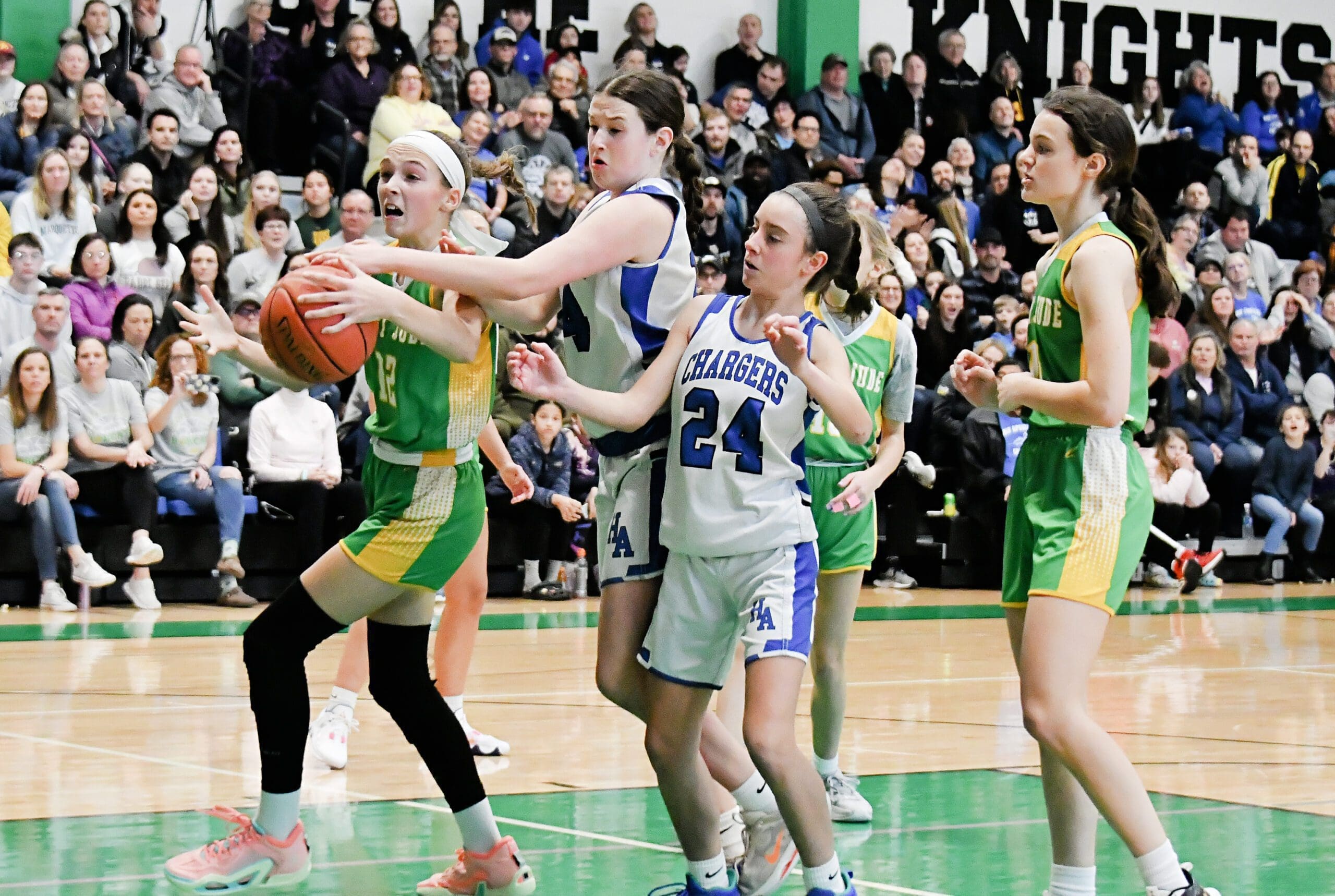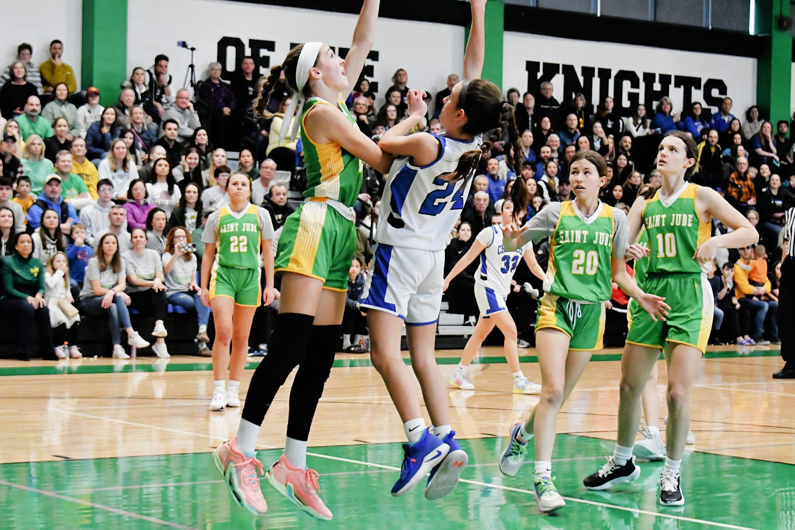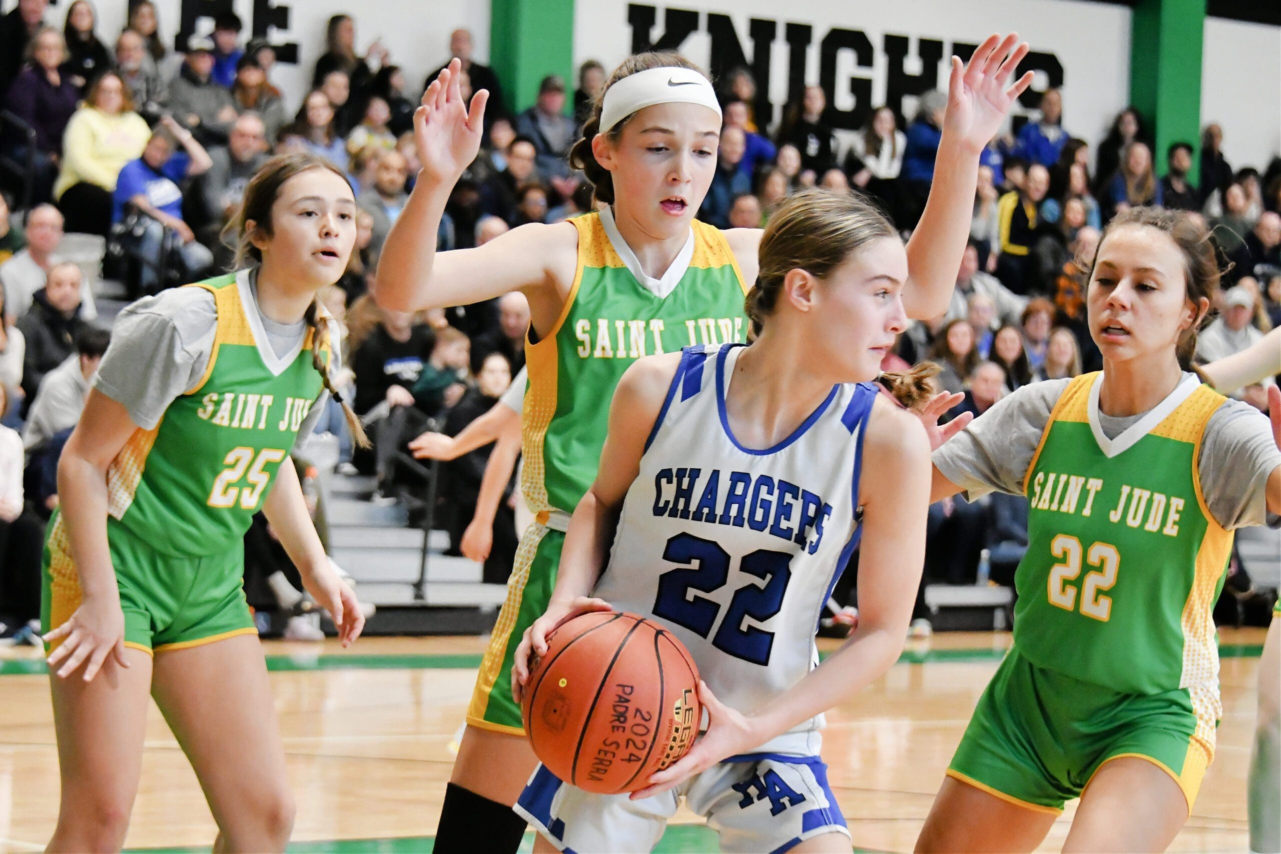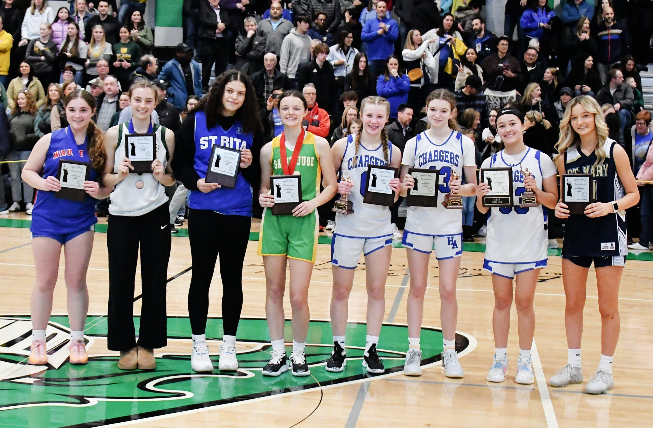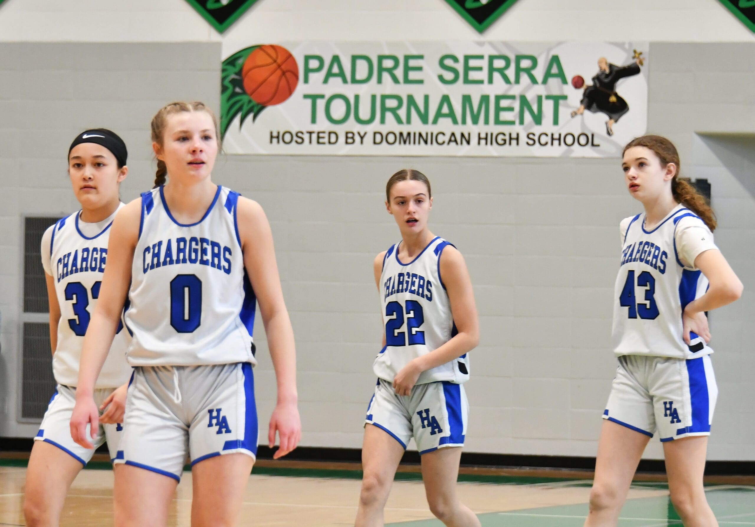 The Holy Apostles (New Berlin) Chargers defeated St. Jude (Wauwatosa), 44-25, in the championship game of the Padre Serra Girls Basketball Tournament on Sunday, March 24, at Dominican High School, Whitefish Bay. In the third-place game earlier in the day, the co-op team of St. John Vianney, Brookfield/St. Mary’s Visitation, Elm Grove/St. Joseph, Wauwatosa, defeated Waukesha Catholic, 45-39.