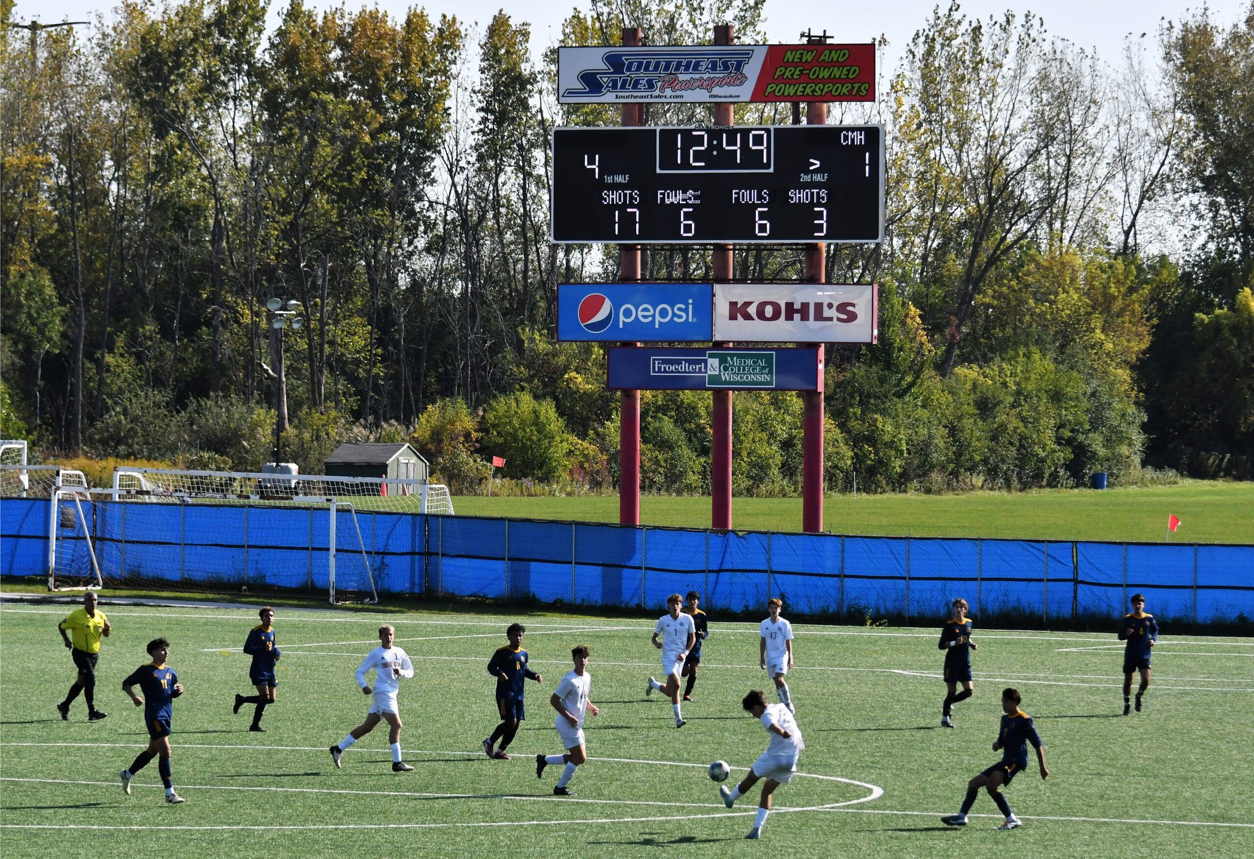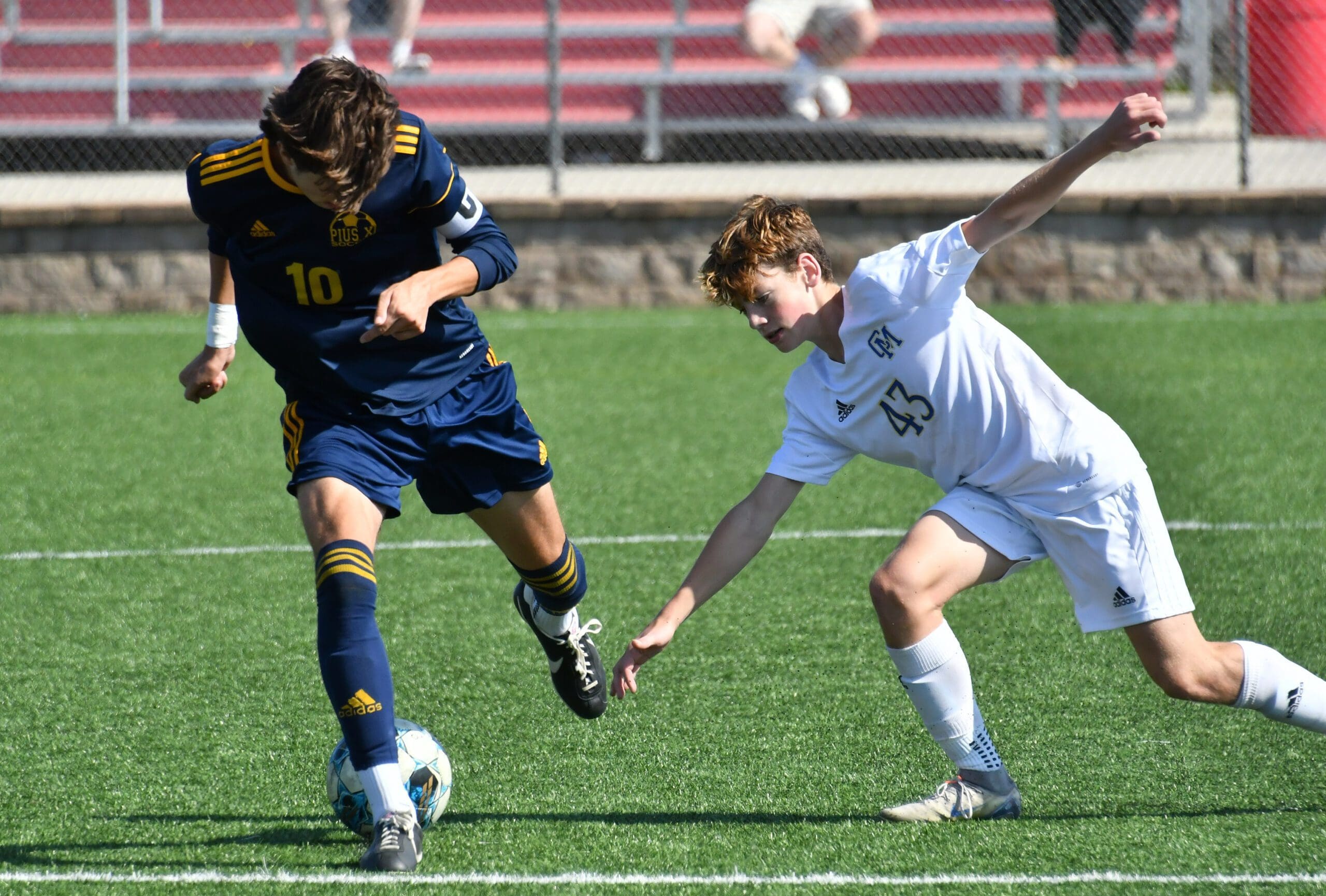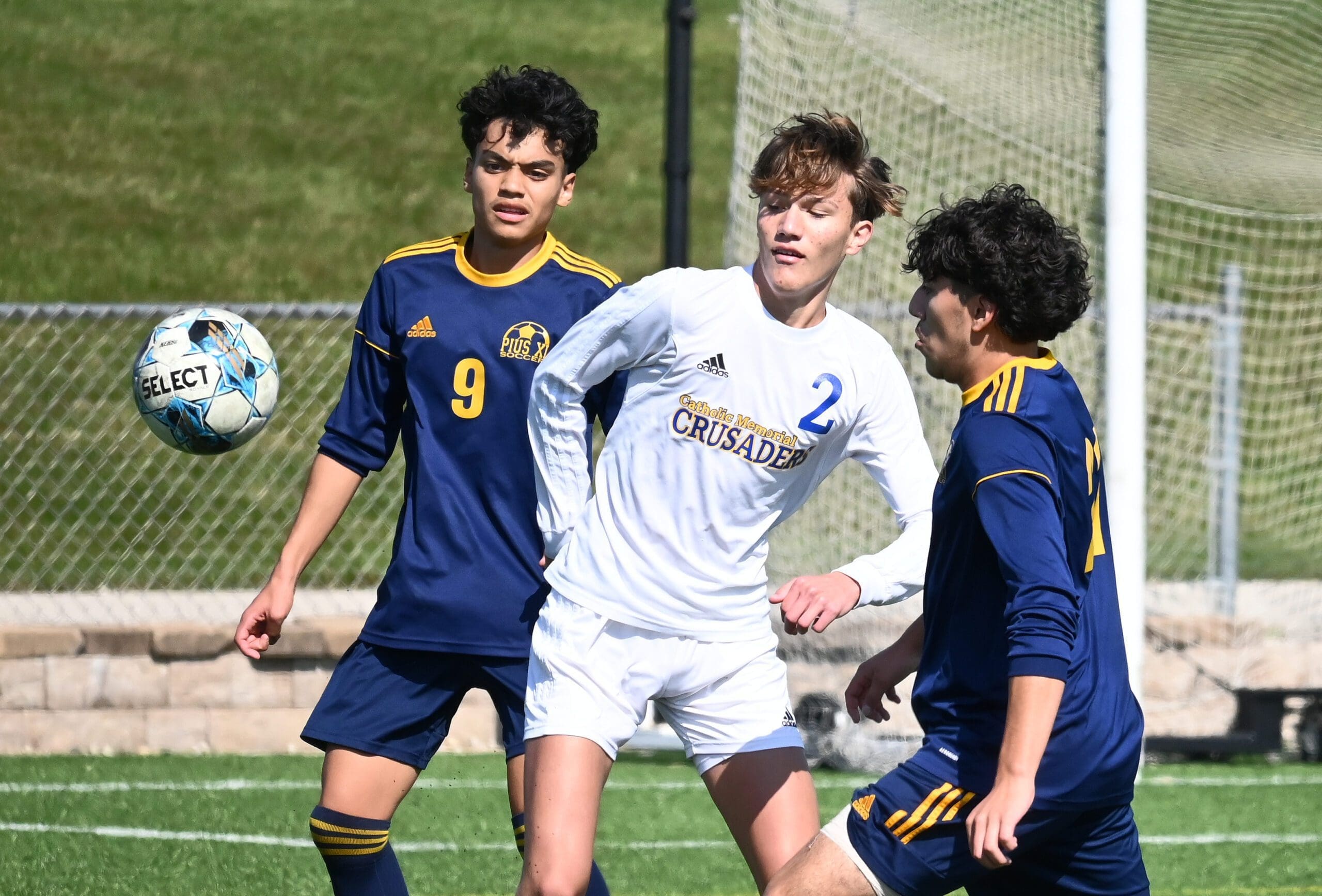 On Saturday, Oct. 5, Pius XI High School of Milwaukee squared off with Catholic Memorial of Waukesha in a soccer match at Uihlein Park in Milwaukee. Pius won 4-1. (Photo by David Bernacchi)