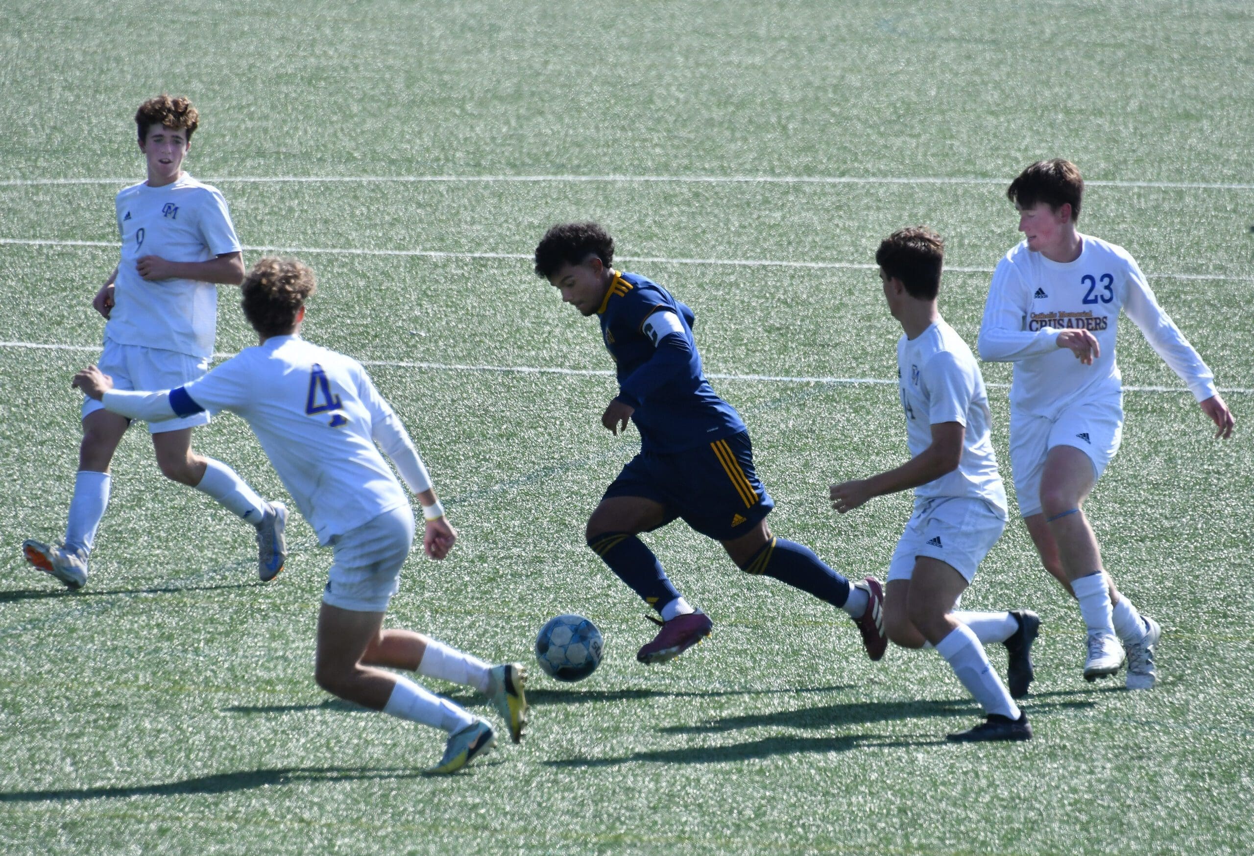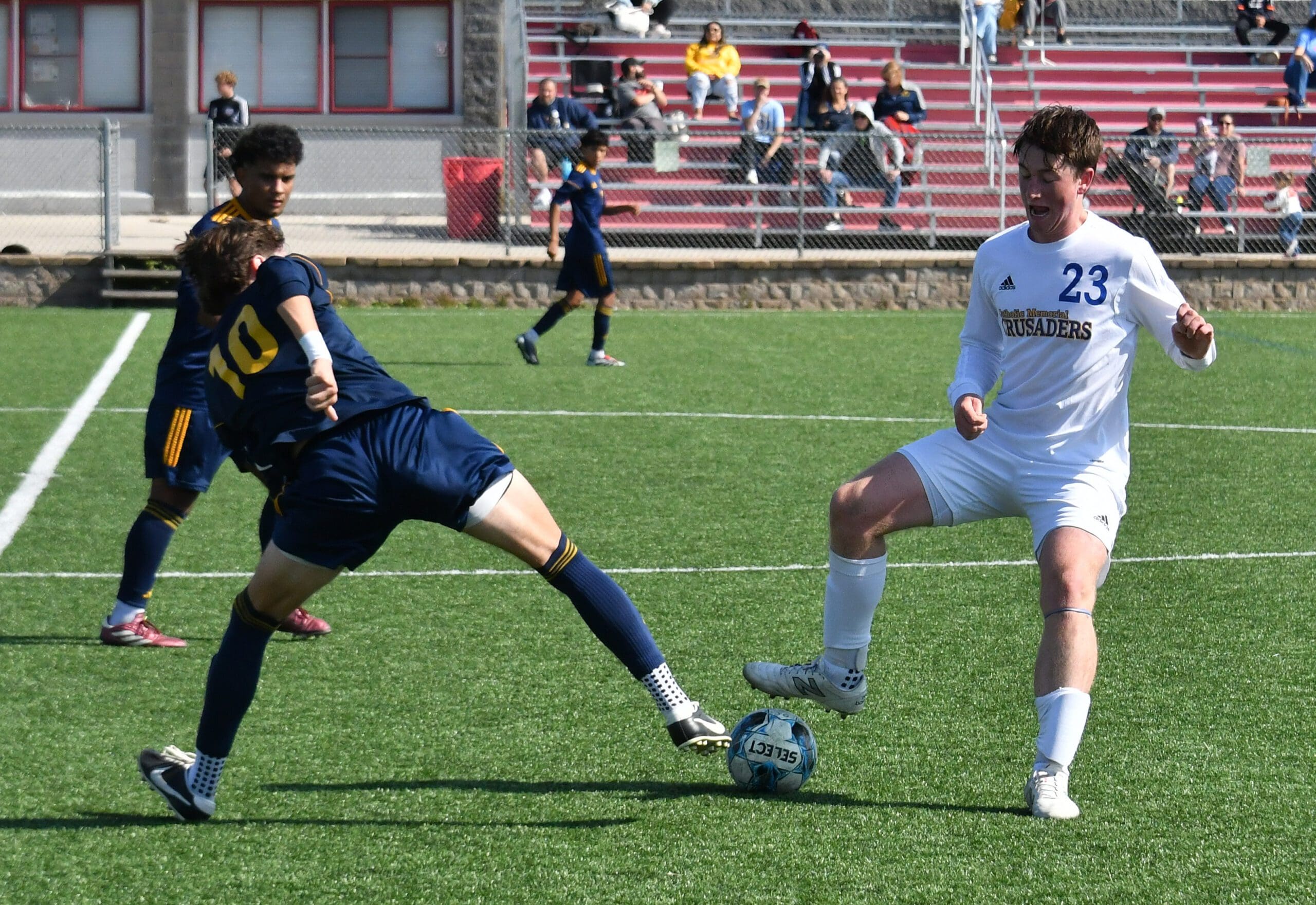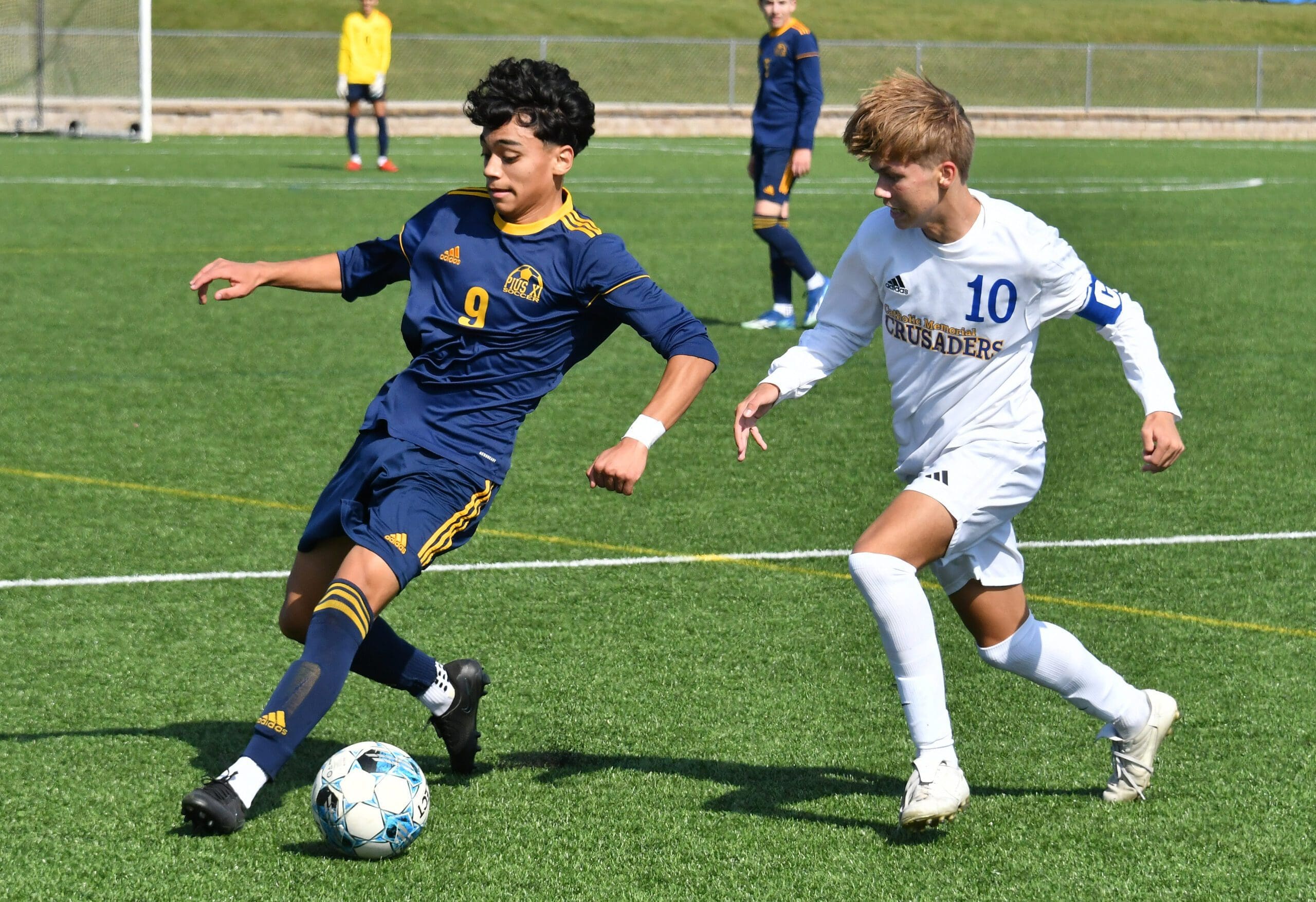 On Saturday, Oct. 5, Pius XI High School of Milwaukee squared off with Catholic Memorial of Waukesha in a soccer match at Uihlein Park in Milwaukee. Pius won 4-1. (Photo by David Bernacchi)
