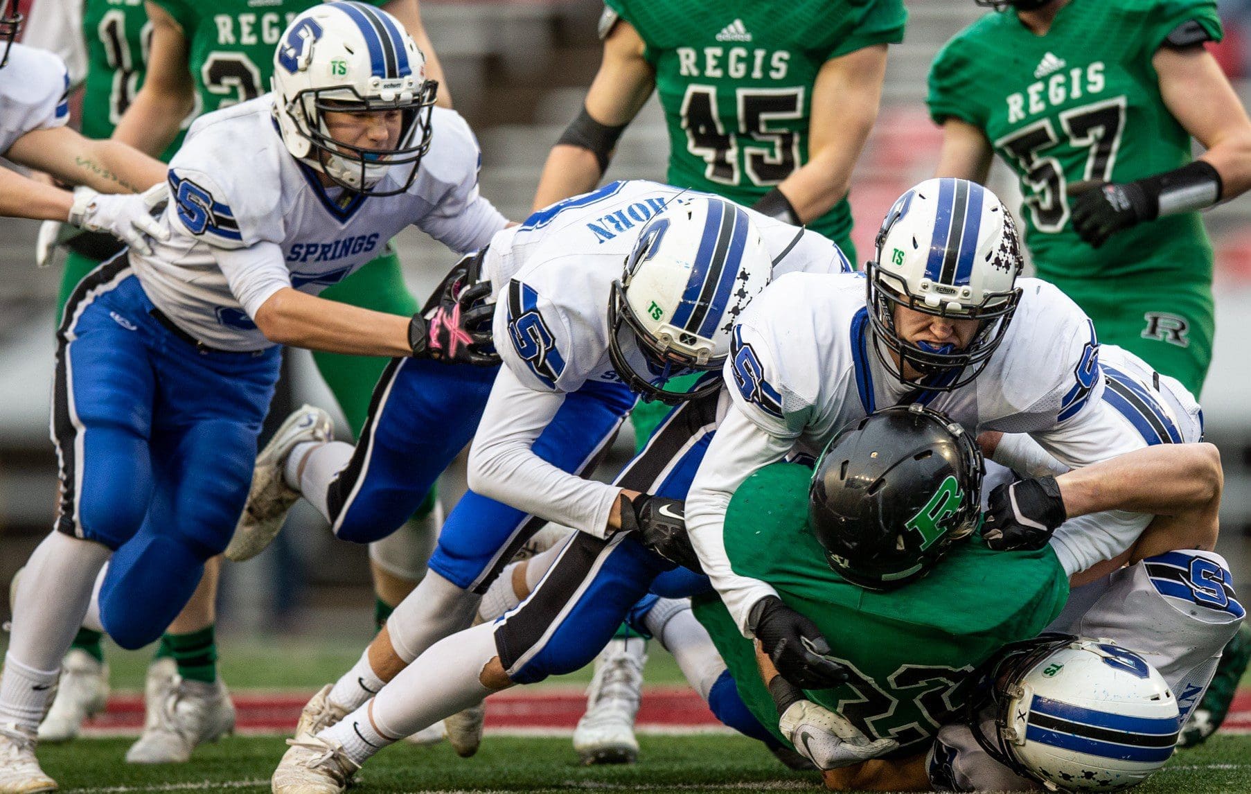 From that point on, the defenses for both teams took over, as the best scoring chance for either team the rest of the way came when Regis drove the Springs 34-yard line early in the fourth quarter before turning the ball over on downs.