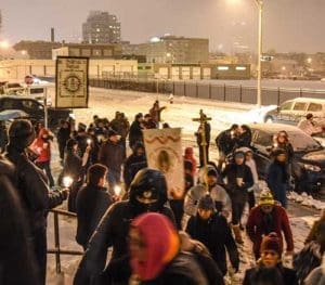 “I have dozens of young people who study and work with DACA (Deferred Action for Childhood Arrivals), I am very anxious for them about what the new administration will mean,” said Fr. Manatt. “This is an opportunity to give public expression to our faith. People along Sixth Street and people up here at National Avenue, the people in the restaurants along Fifth Street are going to say, ‘What are those crazy people doing walking in the snow?’ That’s not the reason why we’re doing it but it’s a positive consequence of what we’re doing.”