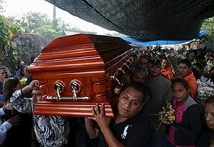 The coffin of Gisela Mota, former mayor of Temixco, Mexico, is carried out of her home Jan. 3. Mota was killed Jan. 2, one day after taking oath of office. (CNS photo/Margarito Perez, Reuters) “How is it possible that all of a region of the state is in the hands of organized crime, that people are paying protection money,” said Bishop Ramon Castro Castro of Cuernavaca, in comments published by the newspaper Reforma.