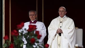 While the pope’s homily pointed to the new saints as inspiring examples of joyful servants who completely trusted in God, he dedicated the bulk of his reflection on the day’s readings and the Christian meaning of authority and hierarchy.