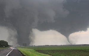 WISNER, Nebraska — Catholics were quick to respond to deadly tornadoes that shredded homes, farms, buildings and power lines in northeast Nebraska June 16.Two large tornadoes are seen near a farm in Pilger, Neb., June 16. Severe storms with tornadoes tore through the Midwest and Upper Midwest that day, killing at least two people, including a 5-year-old girl. (CNS photo/Dustin Wilcox, TwisterChasers via Reuters)