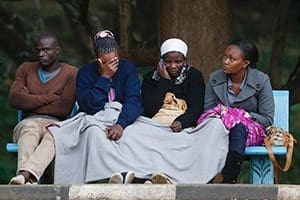 Wilson Kabwoya, Helen Akani, Agnes Khasandi and Margaret Naishorua wait for the bodies of their loved ones to arrive at a mortuary in Nairobi, Kenya, Dec. 2. Since Somali militants killed 36 non-Muslim quarry workers in early December, Christians in Kenya “are living in fear, wondering where the next attack will be,” said Bishop Emanuel Barbara of Malindi. (CNS photo/Dai Kurokawa, EPA)