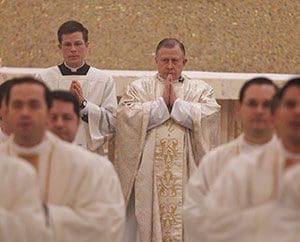 ROME — When accusations of sexual abuse against Fr. Marcial Maciel Degollado, founder and then-general director of the Legionaries of Christ, were first published in 1997, Fr. Eduardo Robles Gil was running one of the congregation’s schools in Mexico City.Mexican Fr. Eduardo Robles Gil, the new general director of the Legionaries of Christ, center, leaves in procession after celebrating Mass at the order’s Center for Higher Studies in Rome Feb. 6. Fr. Robles Gil was elected by Legionaries meeting in a general chapter in Rome. (CNS photo/Paul Haring)