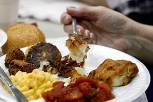 Fried haddock and other items are seen on a guest’s plate during a fish fry in the parish hall of St. Mary’s Church in Altoona, Pa., in this file photo from 2013. The Friday fish fry is a big event for lots of people in Catholic parishes, especially in some sections of the United States. (CNS photo/Bob Roller)