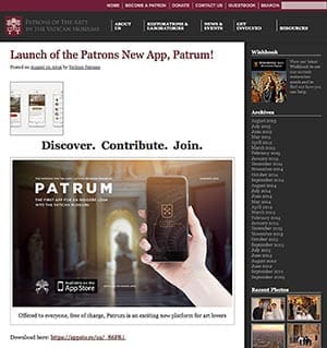 “Patrum,” the new app from the Patrons of the Arts in the Vatican Museums, launched in mid-August. Part social network and part crowdsourcing, the app lets museum fans communicate with each other and make donations online.