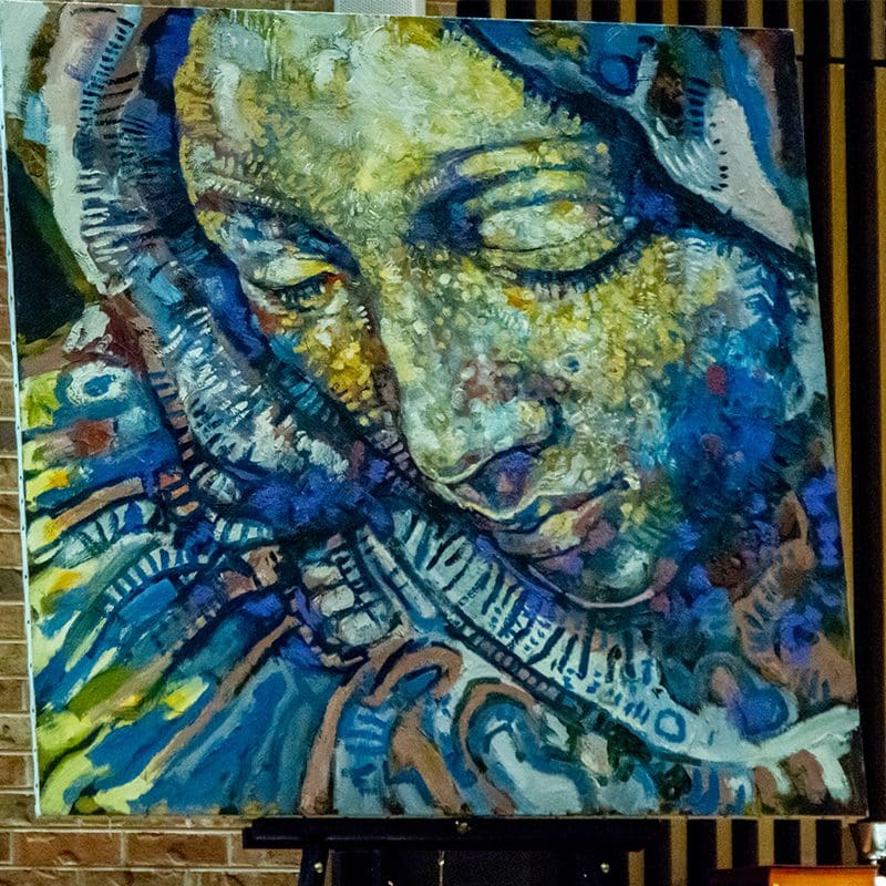 A parishioner from Sacred Heart took it upon herself to collect the painting in Savannah, Georgia, where Bonnell resides. Unbeknownst to anybody, the parishioner also purchased a second painting that the artist was finalizing, a 3-foot-by-3-foot beautiful image of Mary, titled, “The Face of Mary after Michelangelo’s Pietá.”