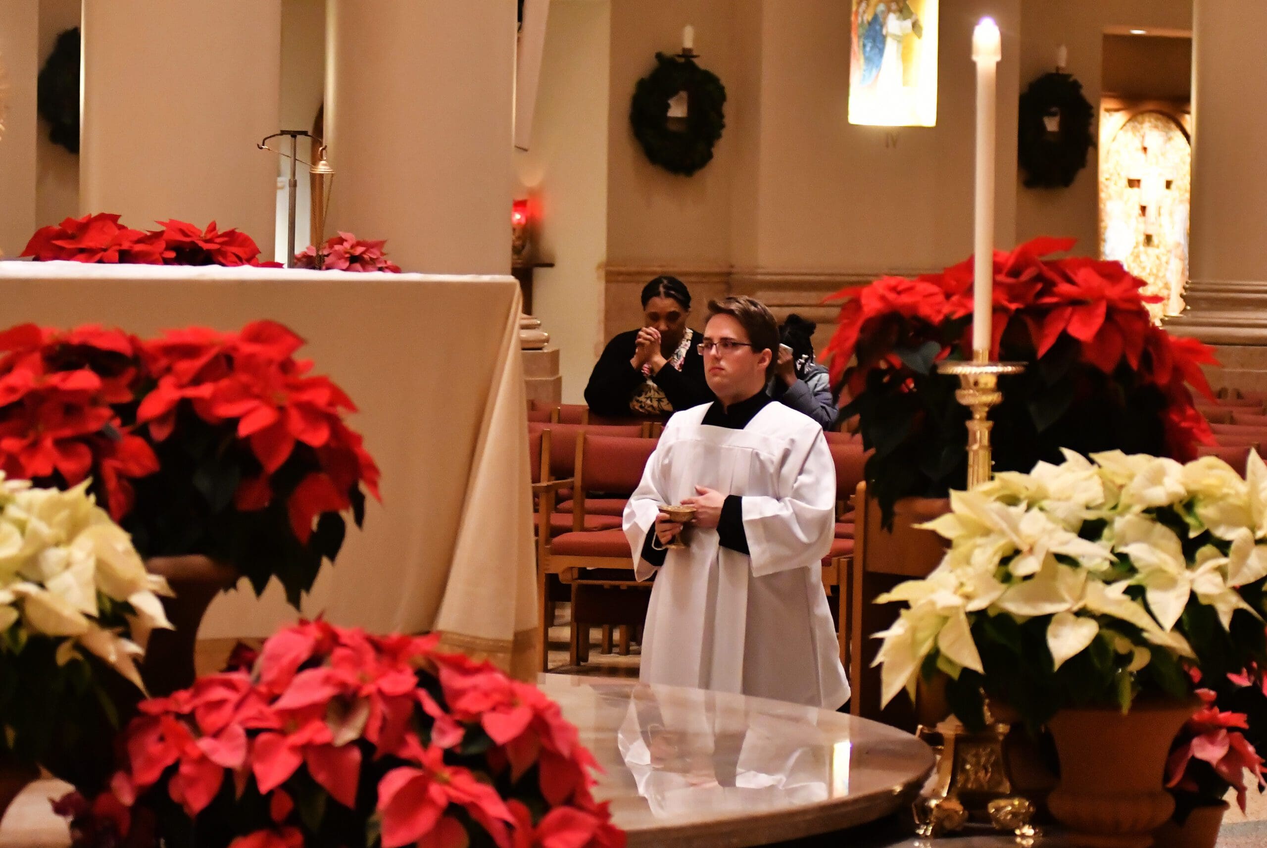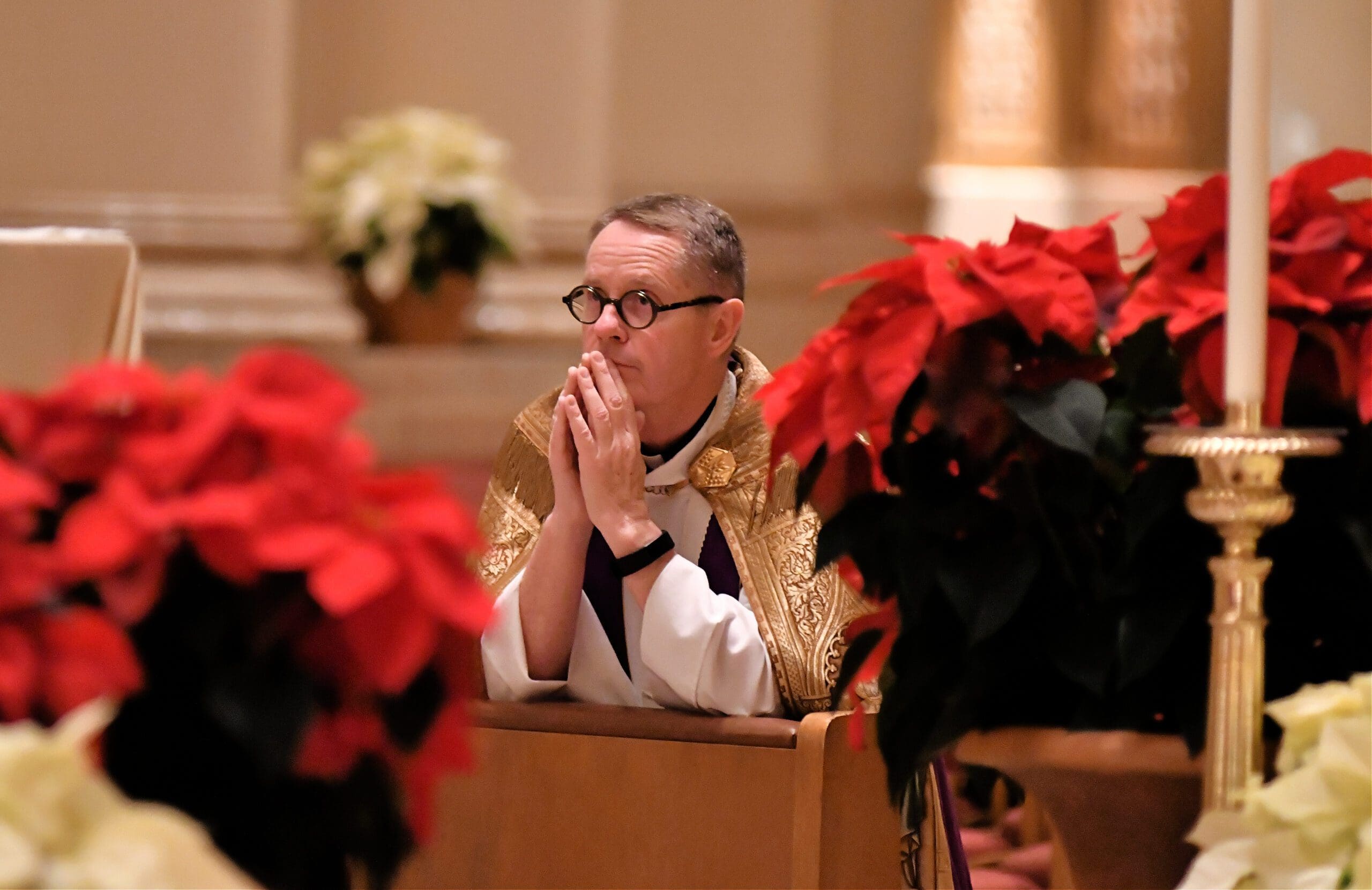 Fr. Tim Kitzke prays during the Prayer Vigil for Justice held New Year’s Eve, Dec. 31, at the Catheral of St. John the Evangelist, where he is Rector. (Photos by David Bernacchi)