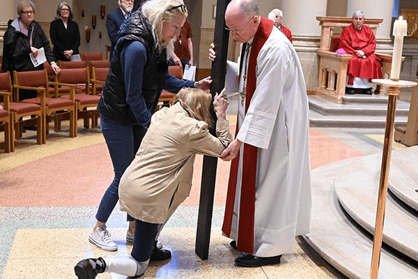 Archbishop Jeffrey S. Grob offers Veneration of the Cross to the faithful attending the Celebration of the Passion of [...]