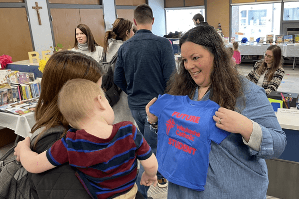 Meghan Gorzalski, Director of Admissions and Marketing for Waukesha Catholic School System, presents a t-shirt to the younger brother [...]