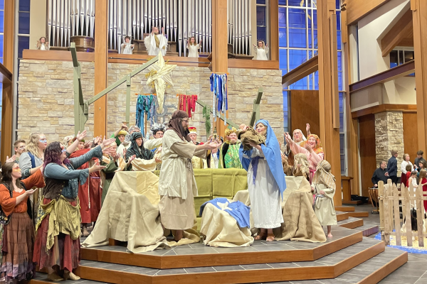 Joseph (Aaron Kraus) and Mary (Tina Kraus) present Jesus (their seven-week-old son August) at the conclusion of the “Hallelujah [...]