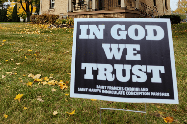 The “In God We Trust” signs offered by two West Bend parishes are shown in front of a parishioner’s [...]